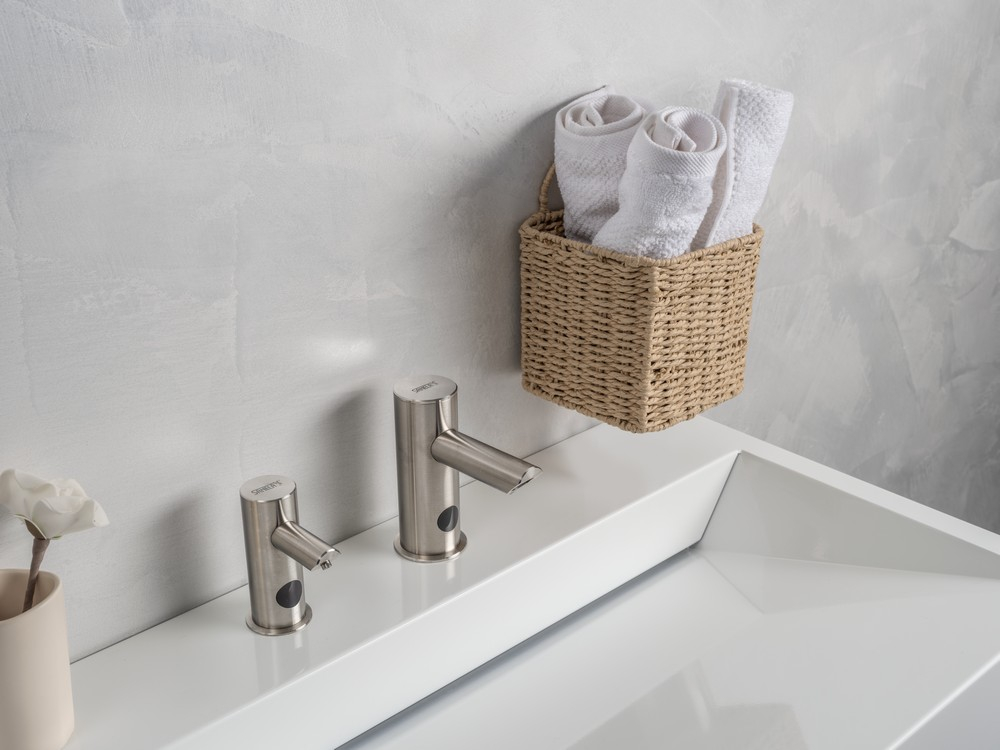Sanela nie zapomina także o zrównoważonym rozwoju. Baterie są wyposażone w oszczędny perlator o ograniczonym przepływie do 6 litrów na minutę, co pozwala oszczędzać wodę bez wpływu na komfort użytkowania. Z kolei dozowniki minimalizują zużycie mydła, co prowadzi do bardziej efektywnego wykorzystania środków czyszczących.