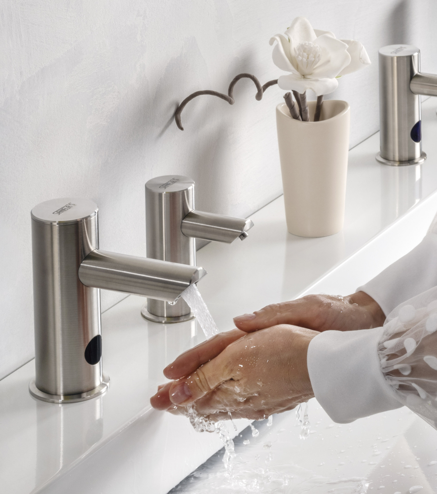 Zarówno baterie, jak i dozowniki działają na zasadzie czujnika, który eliminuje kontakt z powierzchnią. Dzięki temu użytkowanie jest maksymalnie higieniczne i jednocześnie wygodne. Automatyczne higieniczne przepłukiwanie baterii dodatkowo zapobiega namnażaniu się bakterii, takich jak Legionella.