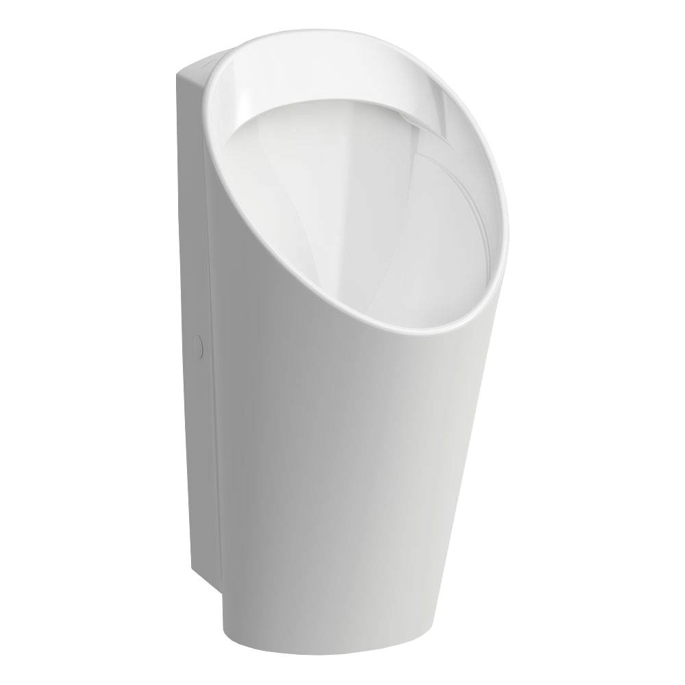 SLP 59RZ - nr. wyr. 01595 - ceramiczny pisuar z radarowym spłukiwaniem, w tym moduł Bluetooth, zawór elektromagnetyczny, węże przyłączeniowe, zawór kątowy z filtrem i zaworem zwrotnym, złączka wlotowa z gumową uszczelką, zestaw montażowy, papierowy szablon do wiercenia, zasilacz