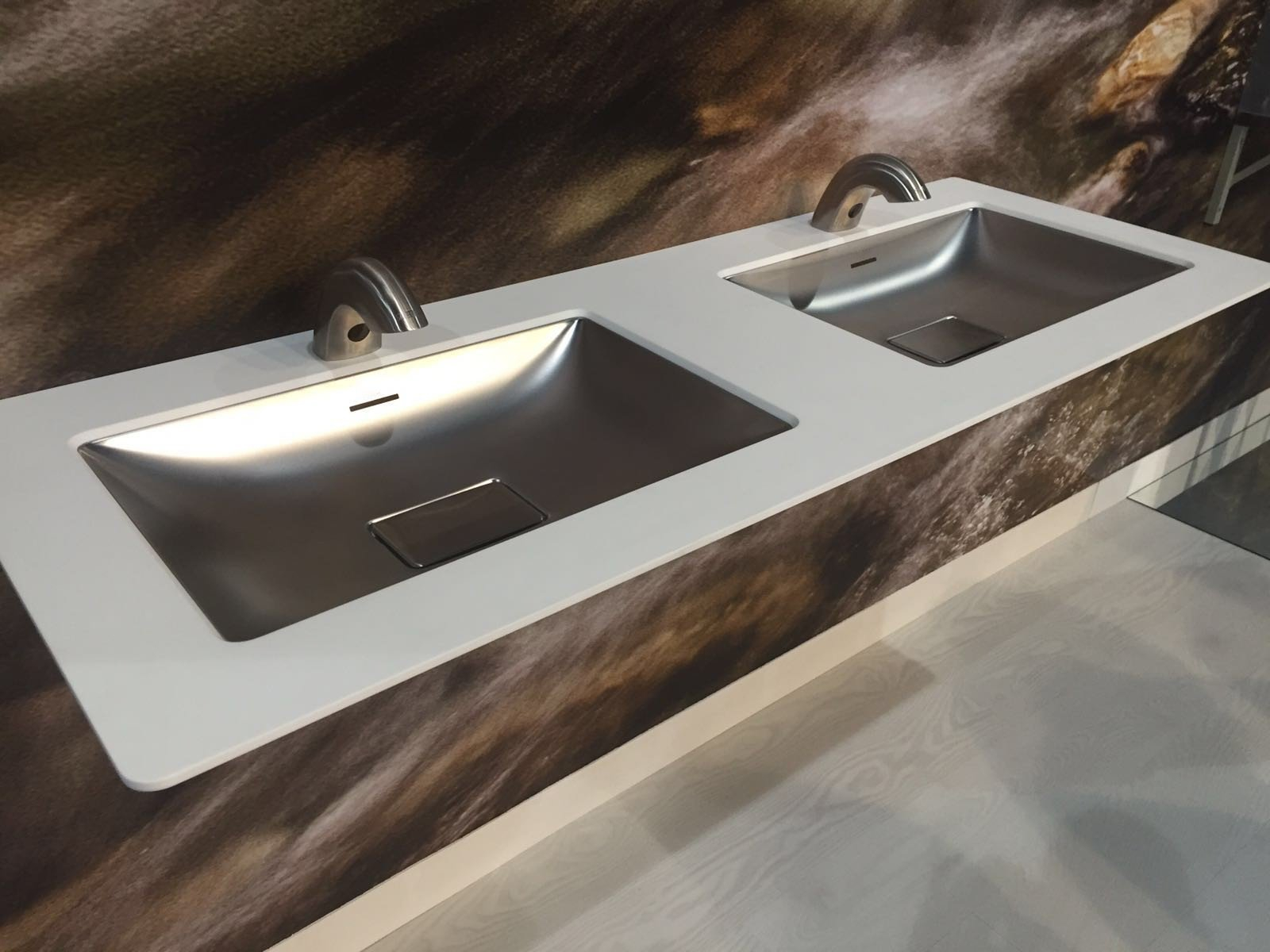 Stojąca bateria umywalkowa ze stali nierdzewnej przeznaczona do wody ciepłej i zimnej, 24 V DC