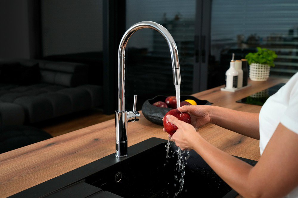 - regulacja temperatury za pomocą termostatu pod zlewem