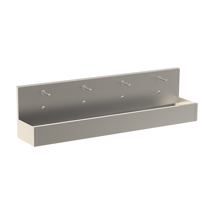Nierdzewny wiszący zlew z zabudowaną elektroniką (4 szt), z mieszaczem termostatycznym, długość 2500 mm, 24 V DC