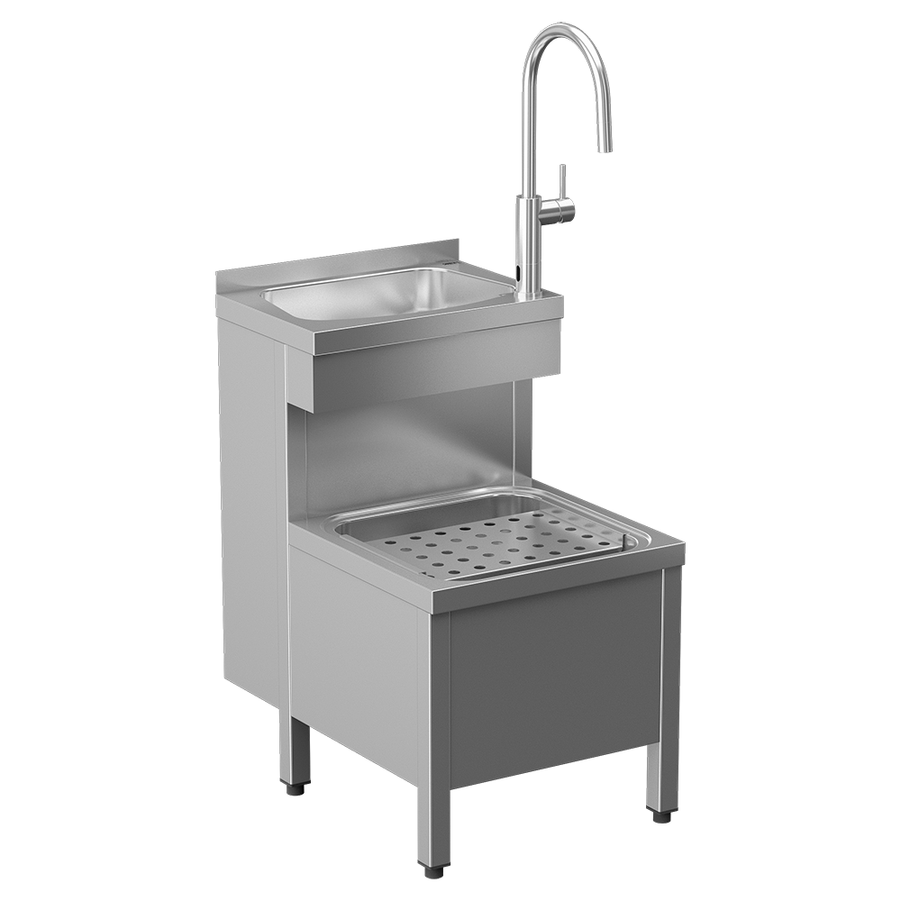 Nierdzewna stojąca umywalka z brudownikiem, z SLU 68B, 6 V