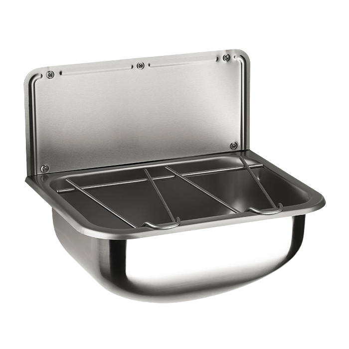 SLVN 04 - nr. wyr. 98040 - nierdzewny brudownik, tylna ściana, kratka, syfon, uchwyty montażowe