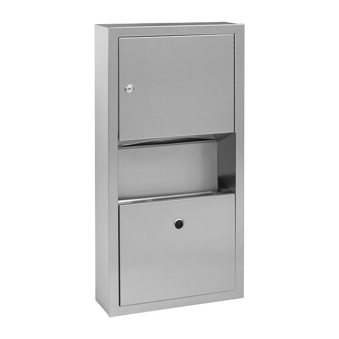 Nierdzewny podajnik na składane ręczniki papierowe w połączeniu z nierdzewnym wyjmowanym koszem, montaż na ścianie, powierzchnia matowa